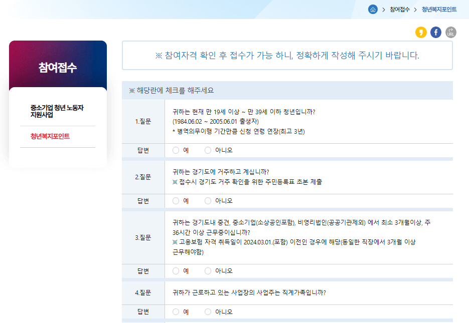 경기도 청년 복지포인트 신청 자격